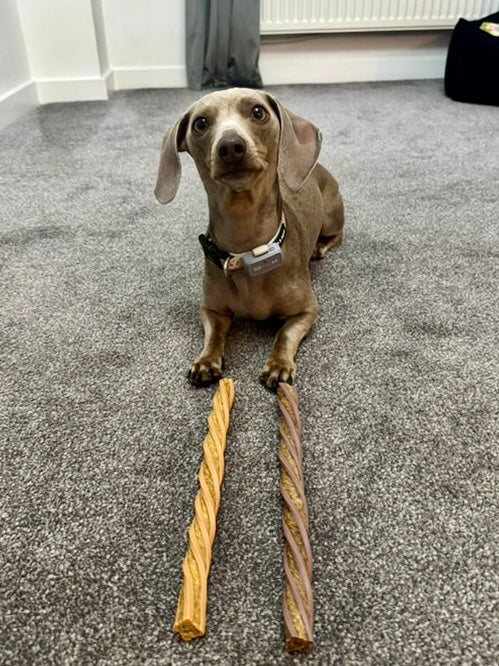 This is a complementary dog food and should be given as part of a balanced diet. Always supervise your dog while they enjoy their treats and ensure fresh drinking water is available.